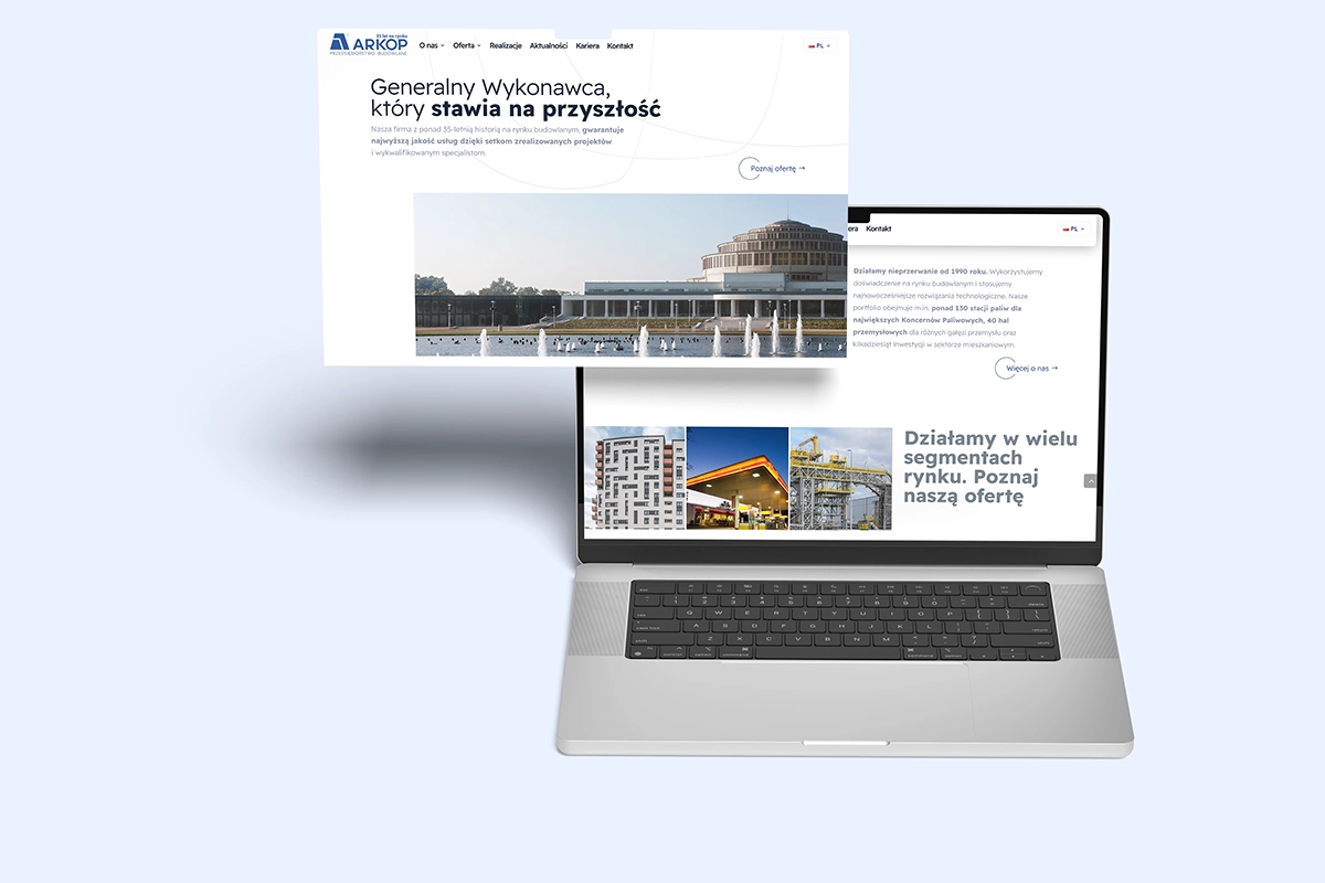 Strona jest projektowana indywidualnie pod Twoją firmę i branżę. Nie korzystamy z gotowych szablonów ani powielanych układów - projekt powstaje od zera.
